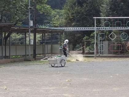 毎日毎日、勢いよく雑草が校庭などあちらこちらから生えてきます。こっちの草を刈りおわるころにはまたはじめに勝った場所から草が生えてきます。校庭も何人かの職員も一緒に草を刈りきれいになりました。畑周辺、体育館周りなども用務主事さんがやってくれてきれいになりました。