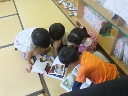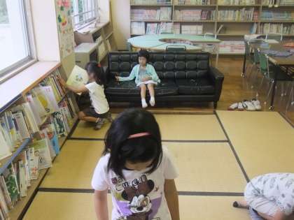 1年生が図書室で本を読んでいました。