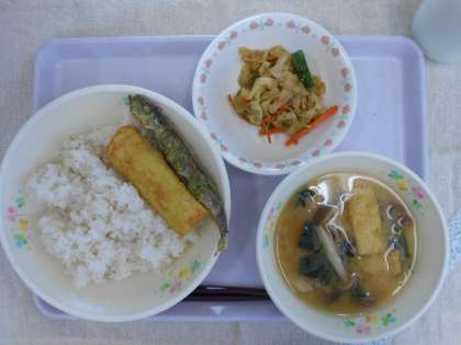 二色揚げ(シシャモの青のり揚げ・ちくわのカレー揚げ)