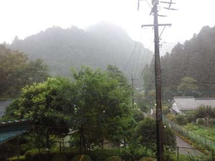 今日の午前中は大雨でしたね。今は、学校の周辺は晴れ間も見えています。しかし、これから台風が近づいてくるので。みなさんも十分に気をつけてください。写真は、今日の午前中に職員室から撮影したものです。