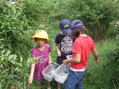 毎年恒例の中村農園さんでのブルーベリー摘みです。子供たちは楽しみにしている行事です。摘んだブルーベリーを給食室ではジャムにして今年は、ブルーベリーヨーグルトにかけて食べました。