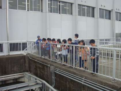 見学した小作浄水場では、多摩川の水がおいしくなるまで