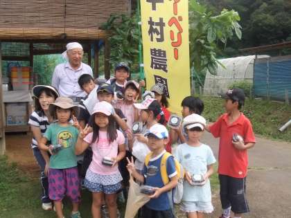 毎年恒例の中村農園さんでのブルーベリー摘みです。子供たちは楽しみにしている行事です。摘んだブルーベリーを給食室ではジャムにして今年は、ブルーベリーヨーグルトにかけて食べました。