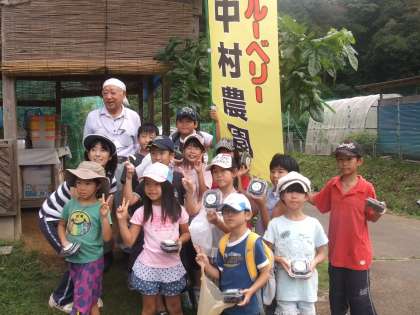 毎年恒例の中村農園さんでのブルーベリー摘みです。子供たちは楽しみにしている行事です。摘んだブルーベリーを給食室ではジャムにして今年は、ブルーベリーヨーグルトにかけて食べました。