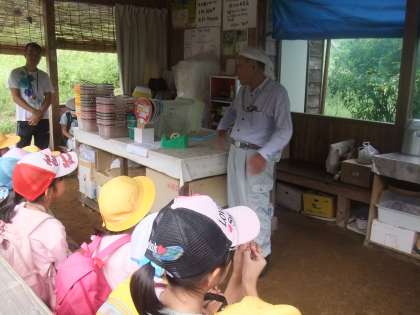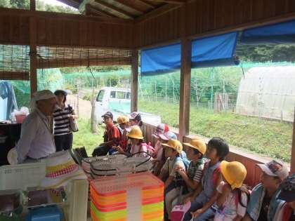 毎年恒例の中村農園さんでのブルーベリー摘みです。子供たちは楽しみにしている行事です。摘んだブルーベリーを給食室ではジャムにして今年は、ブルーベリーヨーグルトにかけて食べました。