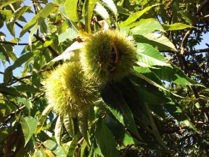 今朝、学校の栗の木を見上げてみたら、もうはじけそうでした。