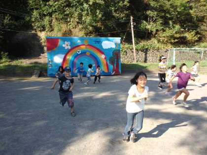 2年生が学級活動で「だるまさんがころんだ」をみんなでやっていました。すごく楽しそうでした。
