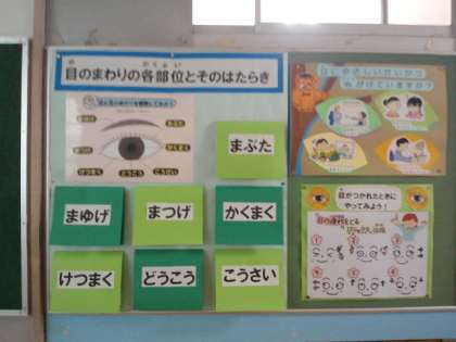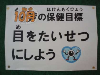 10月の保健目標は「目を大切にしよう」です。10月10日は「目の愛護デー」です。保健室前に掲示してあるものを掲載します。