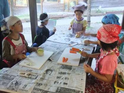 遅くなりましたが、9月30日に1〜4年生合同で夕やけ小やけふれあいの里のバーベキュー場で行われた「飯盒炊爨」の様子を紹介します。事前に、4年生がリーダーとなり、1〜3年生にしおりを使って説明に行きました。また、4年生も事前に飯盒でご飯を炊く練習をしたり、3年生はカレー作りのリーダーとして練習をしてきています。そして、当日、1,2年生は野菜や肉を切ったりしました。3年生はカレー作り当番です。4年生は火をつけるところから始め、飯盒でご飯を炊きます。一人一人がとてもよく働き、今年度は、時間よりかなり早く出来上がり、余裕がありました。素晴らしいです。