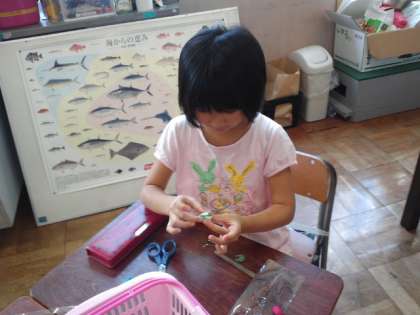 3年生がまゆを使った創作活動に取り組みました。一人ひとり一生懸命に作っていました。