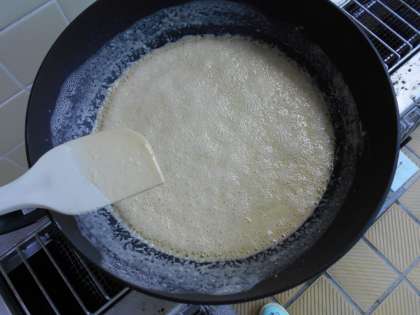 ルーは弱火でじっくりと色をつけながら炒めています。