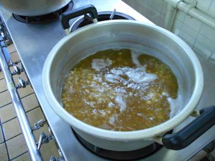 大豆は乾燥している物を水から茹でています。