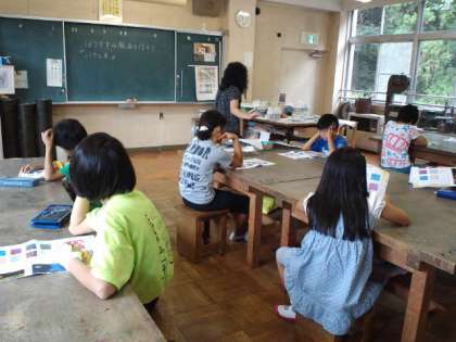 図画工作の授業の様子です。版画でした。細かい線を丁寧に彫っていました。