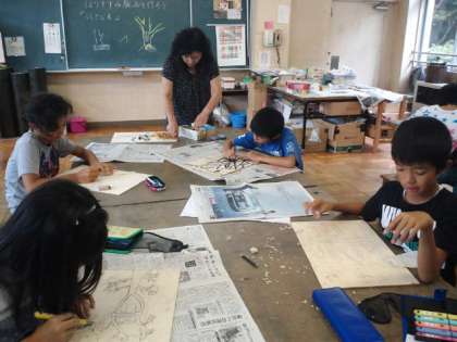 図画工作の授業の様子です。版画でした。細かい線を丁寧に彫っていました。
