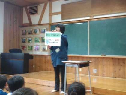 今日の朝会は保健朝会でした。養護教諭から今月の保健目標「目を大切にしよう」の話と、今日の視力検査の説明でした。