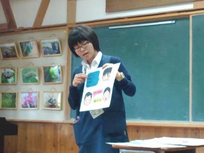 今日の朝会は保健朝会でした。養護教諭から今月の保健目標「目を大切にしよう」の話と、今日の視力検査の説明でした。