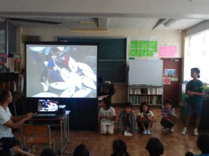 遅くなりましたが、9月26日の木曜日の児童集会の日に5年生が三浦移動教室の報告をしてくれました。その時の様子です。