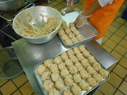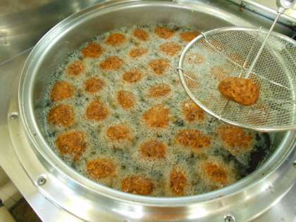 材料を砂のように細かく刻み、よく混ぜ合わせて成形して油で