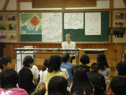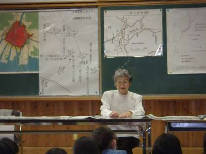 八王子市原爆被爆者の会の方がいらしゃって4年生以上の子供たちに話をしてくださいました。その時の様子です。