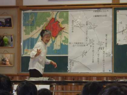 八王子市原爆被爆者の会の方がいらしゃって4年生以上の子供たちに話をしてくださいました。その時の様子です。