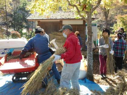 一昨日、五年生が自分たちが育てた稲を脱穀ともみすりをしに夕やけ小やけふれあいの里に出かけてきました。その時の様子です。