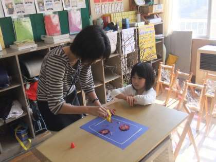 先日3年生が展覧会の作品作りをしていました。まゆの糸を使い素晴らしい作品を作っていました。