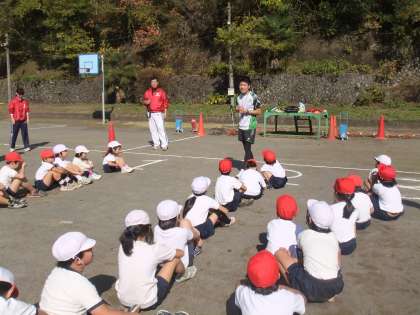 先週の水曜日にJR東日本の陸上部のコーチと夕やけスポーツの方5名でランニング教室を行いました。初めに1〜3年生が60分指導を受け、そのあと、4〜6年生が60分指導を受けました。一緒に給食も食べました。その時の様子を紹介します。写真の枚数が多いので何回かに分けて紹介します。
