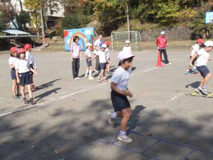 11月6日水曜日にJR東日本の陸上部のコーチと夕やけスポーツの方5名でランニング教室を行いました。初めに1〜3年生が60分指導を受け、そのあと、4〜6年生が60分指導を受けました。一緒に給食も食べました。その時の様子を紹介します。写真の枚数が多いので何回かに分けて紹介します。前回の続きです。