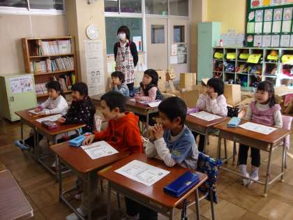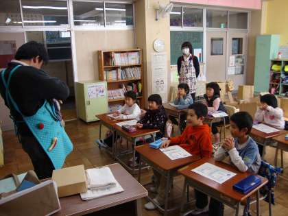 給食管理員さんが、1年生と2年生に「野菜の秘密を知ろう」という食育の授業をしてくれました。