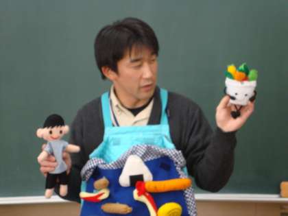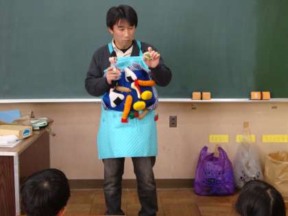 給食管理員さんが、1年生と2年生に「野菜の秘密を知ろう」という食育の授業をしてくれました。