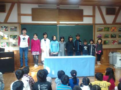 今週の火曜日に保健委員会の子供たちがインフルエンザ予防のための集会をやってくれました。