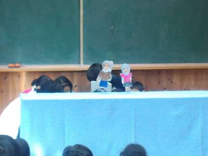 今週の火曜日に保健委員会の子供たちがインフルエンザ予防のための集会をやってくれました。