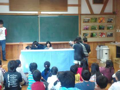 今週の火曜日に保健委員会の子供たちがインフルエンザ予防のための集会をやってくれました。