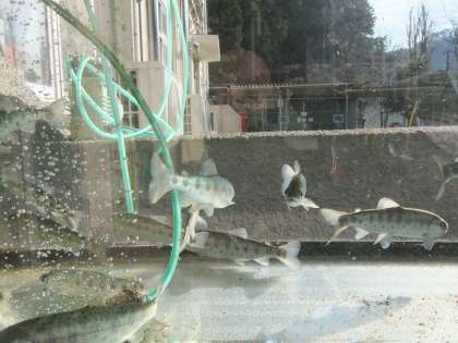 本校のヤマメは今こんなに大きくなりました。また、11月にいただいた卵も孵化して、順調に育っています。孵化したヤマメは3学期の始業式に水槽に移せそうです。