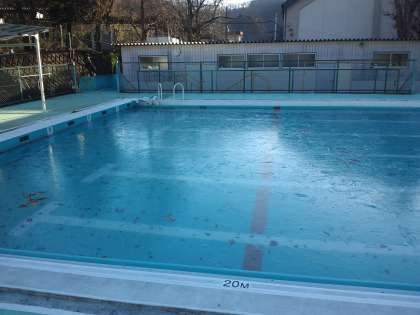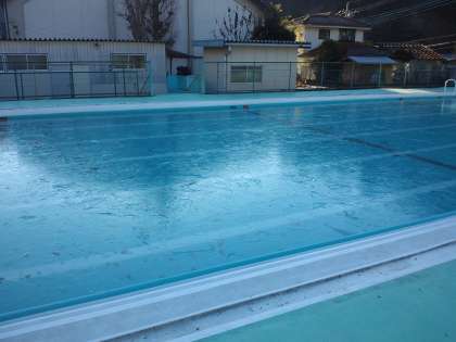 今日の朝はすごく寒かったですね。ついに学校の池そしてプールの水が凍っていました。ウサギ小屋の近くにある温度計は7時30分時点でマイナス5度でした。地面にも霜柱が立っていました。