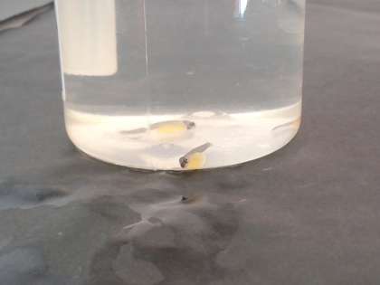 今年一番の冷え込みでしたが、本校のヤマメは冷たい沢水の中でも元気に泳いでいます。そして、ヤマメの稚魚たちも袋が小さくなってきて、体も黒っぽくなってきました。