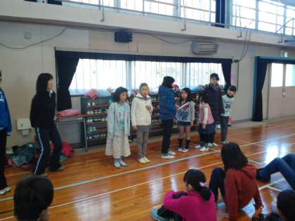 先週の集会は宝探し集会でした。体育館に集会委員さんたちが折り紙で作った宝を隠して、見つけます。縦割り班対抗でやりました。