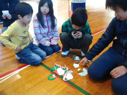 先週の集会は宝探し集会でした。体育館に集会委員さんたちが折り紙で作った宝を隠して、見つけます。縦割り班対抗でやりました。