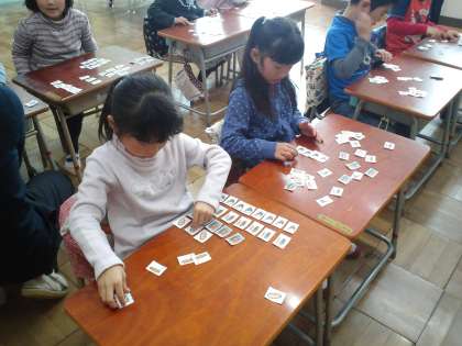 先日、1年生の授業を参観してきました。教育センターの研究主事の先生をお迎えして、1年生の算数の授業の研究会でした。
