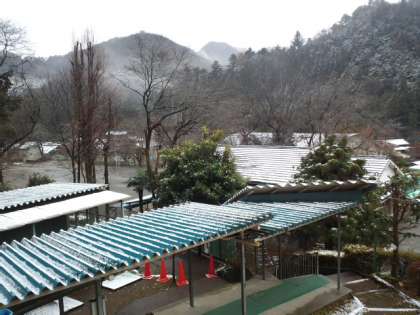 今朝の登校の様子と学校周辺の様子です。今朝の恩二小そして周辺はうっすらと雪景色でした。
