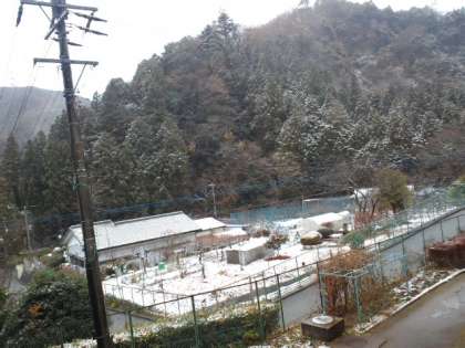 今朝の登校の様子と学校周辺の様子です。今朝の恩二小そして周辺はうっすらと雪景色でした。
