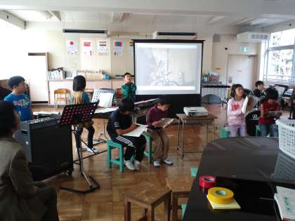 3年生が国語の授業で「モチモチの木」の学習をしました。物語の読解がおわってから、場面ごとに楽器で音を出して朗読しました。すごく物語の雰囲気ができていて素晴らしかったです。