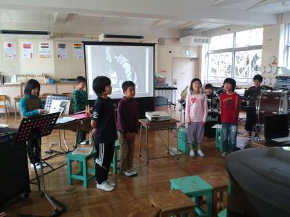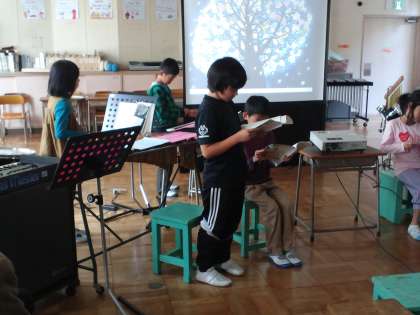 3年生が国語の授業で「モチモチの木」の学習をしました。物語の読解がおわってから、場面ごとに楽器で音を出して朗読しました。すごく物語の雰囲気ができていて素晴らしかったです。