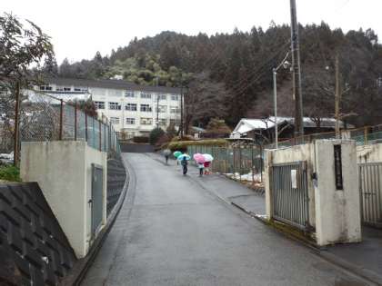 今朝の登校の様子と学校周辺の様子です。今朝の恩二小そして周辺はうっすらと雪景色でした。