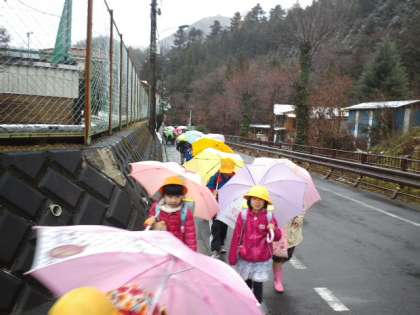 今朝の登校の様子と学校周辺の様子です。今朝の恩二小そして周辺はうっすらと雪景色でした。