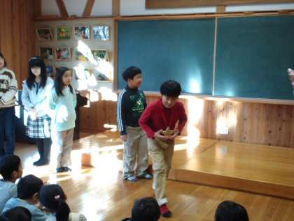 今日で長い二学期が終わりました。皆さんにとって、どんな二学期だったでしょうか?子供たちが今日の終業式で歌った校歌を聴くととても良い二学期だったと感じました。子供たちが歌う校歌には子供たちの過ごして来た気持ちや様子が表れると私は日頃から思っています。今日の子供たちの歌声はのびのびとそして美しく堂々としていました。終業式ではいろいろな表彰がありました。まず、はじめに、給食の表彰です。二年生と六年生が金星をいただいていました。