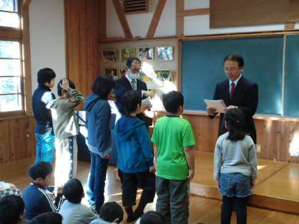 昨日で長い二学期が終わりました。皆さんにとって、どんな二学期だったでしょうか?子供たちが今日の終業式で歌った校歌を聴くととても良い二学期だったと感じました。子供たちが歌う校歌には子供たちの過ごして来た気持ちや様子が表れると私は日頃から思っています。昨日の子供たちの歌声はのびのびとそして美しく堂々としていました。終業式ではいろいろな表彰がありました。次に、持久走の表彰です。各学年で頑張った人に代表で賞状を受け取ってもらいました。