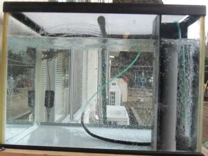 そして、本日午後、恩方漁協の杉本さんがいらしてくださり、水槽のセッティングをしていただきました。子供たちは、明日、自分が育てた稚魚をこの水槽に放流します。