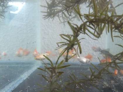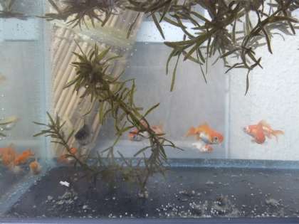 恩二小の金魚たちもみな元気です。朝、晩は寒さが厳しくあまり動きませんが、日中になり、日差しが出てくると元気に動き回るようになります。