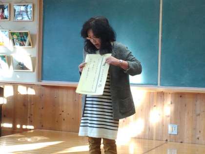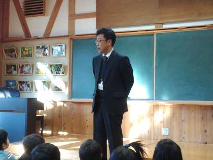 今日は3学期の始業式でした。校長先生のお話、児童代表の話は4年生、そして、校歌、そして、生活指導主任の先生から「1月の生活目標」についての話、体育主任の先生からは「ボール」の使い方、副校長からは「ヤマメの放流」についての話がありました。